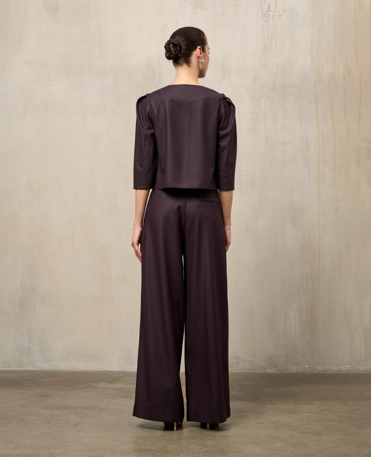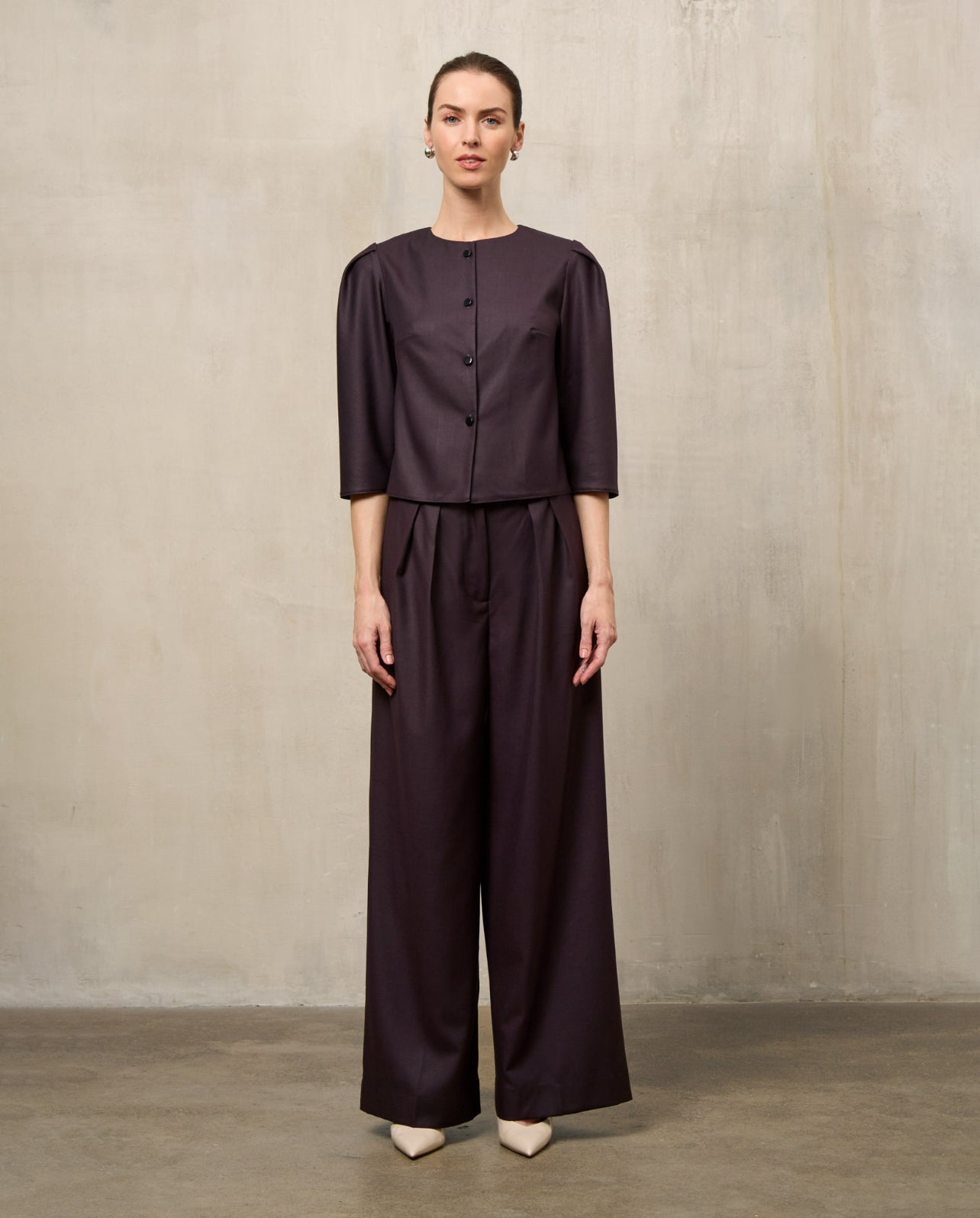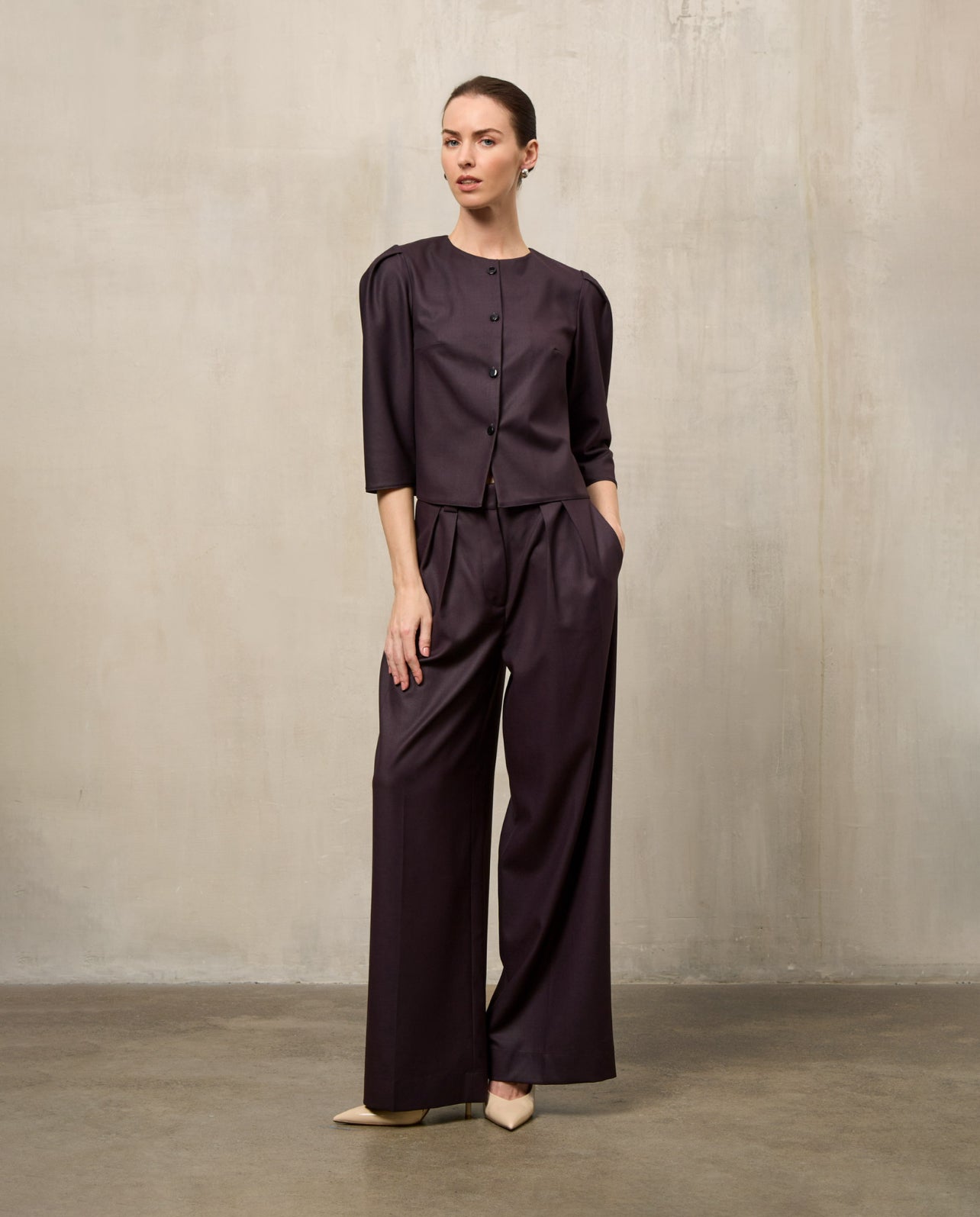 The jacket features a tailored cut that combines elegance and comfort. Its versatile design makes it easy to wear for different occasions, from work to evening events. The palazzo pants go perfectly with the jacket, giving you freedom of movement and a stylish appearance.