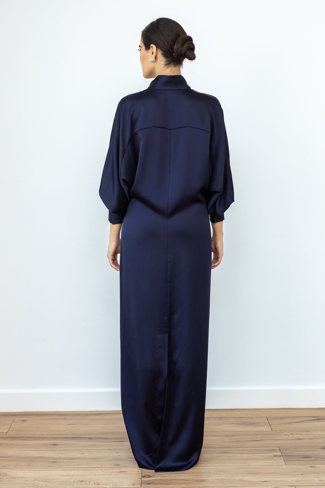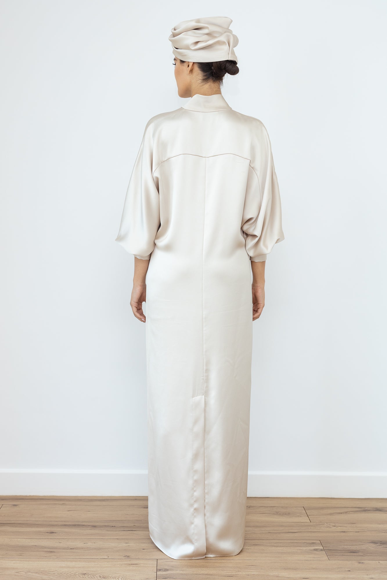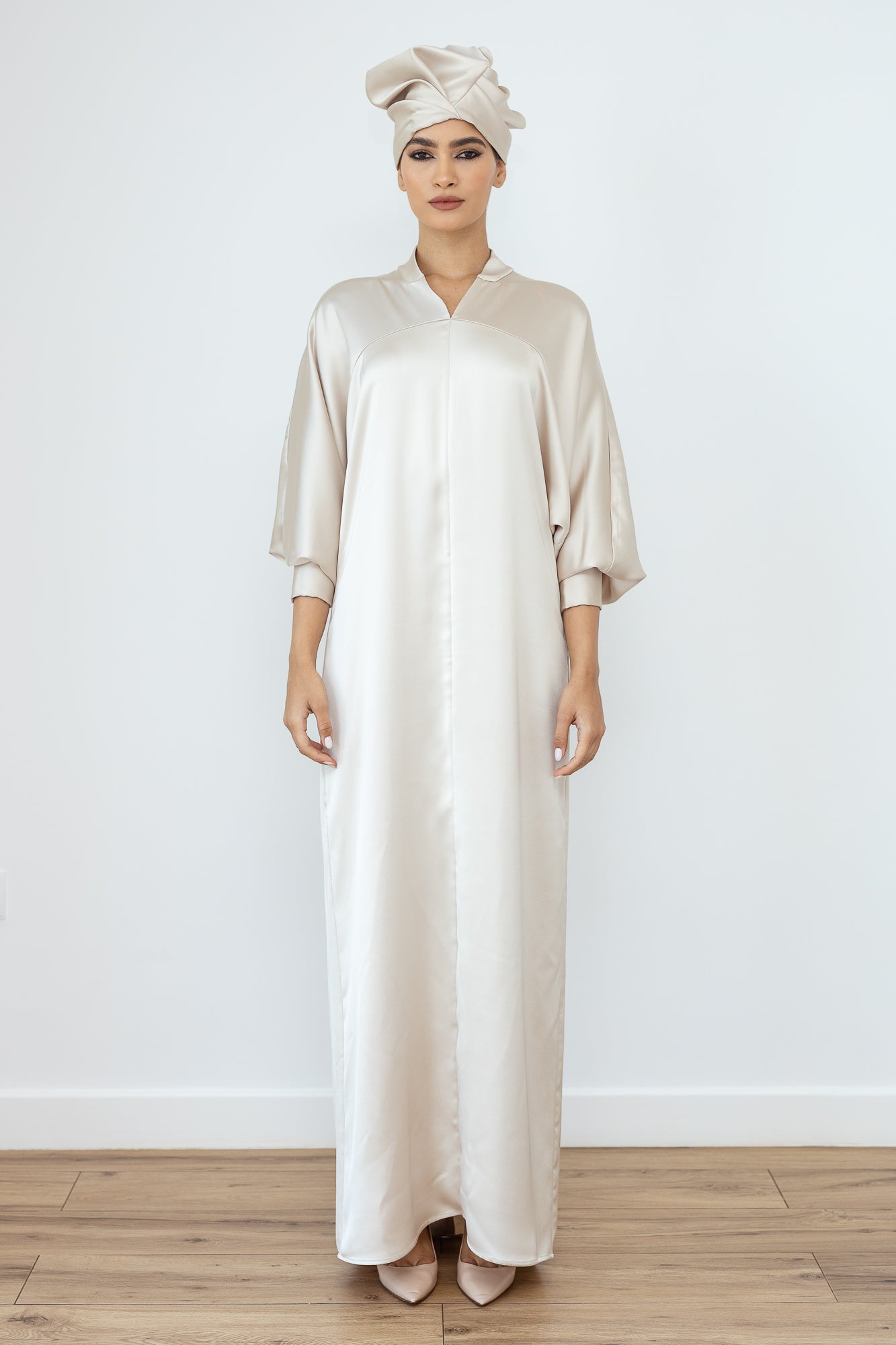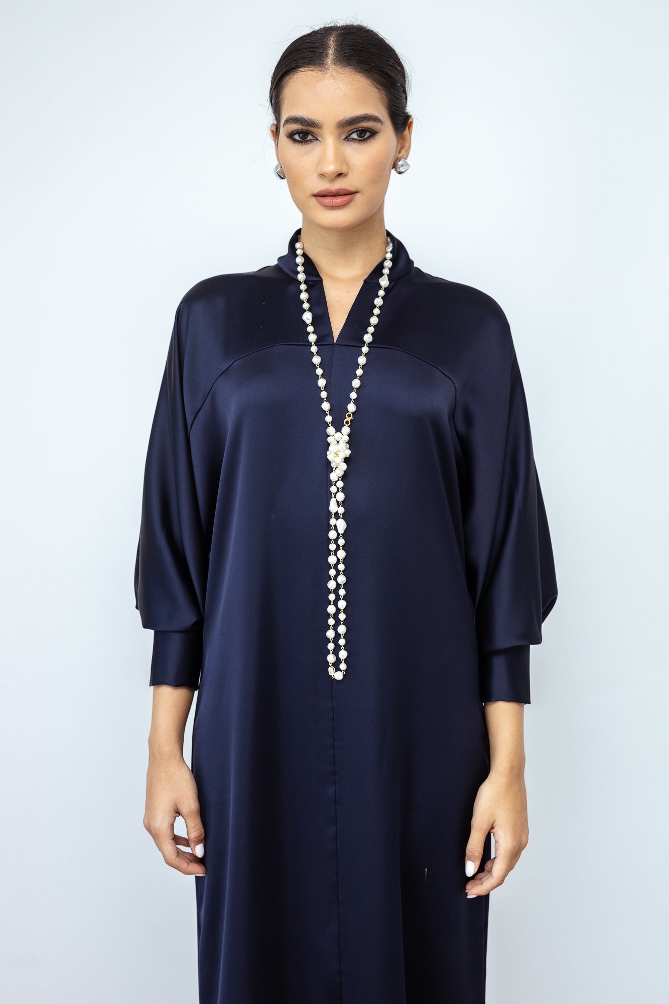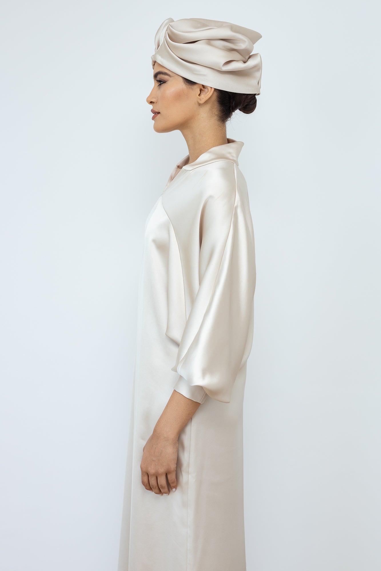 Presented in three shades beige, navy blue, and burgundy this dress is perfect for special moments when you want to feel more magnificent than ever. Each color embodies a unique atmosphere: beige represents the lightness and sophistication of desert sand, navy blue reflects the depth of a starry night sky, and burgundy symbolizes the passion and mystery of Eastern culture.